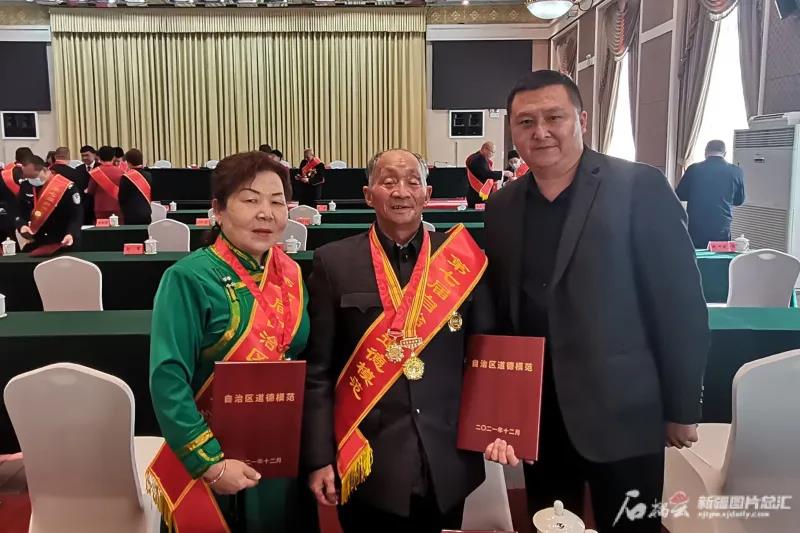 2月14日,付志周(中)在第七屆自治區(qū)道德模范表彰大會(huì)上留影。安小峰攝