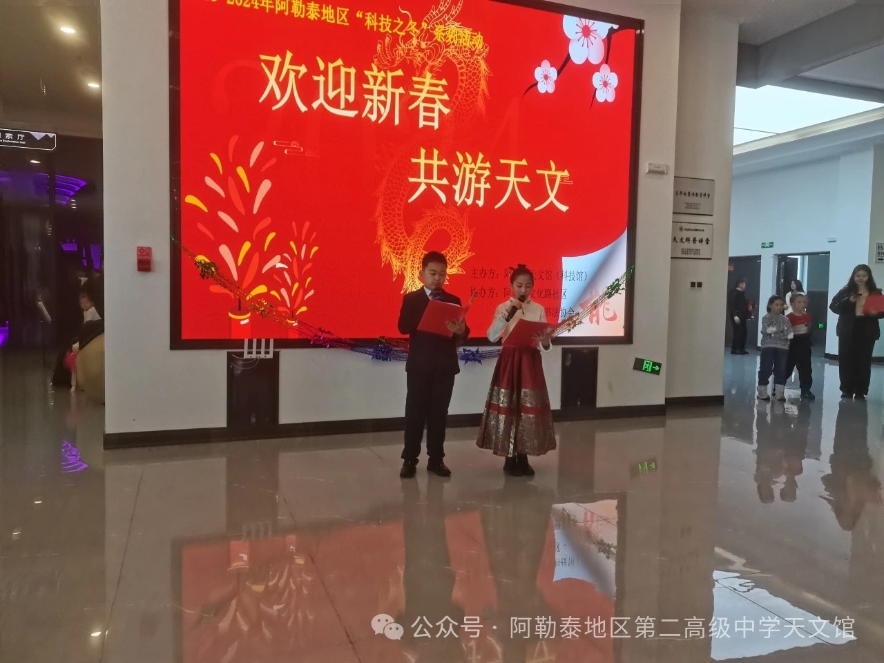 新春將至,為弘揚中華民族傳統(tǒng)文化,增進各民族之間的團結與友誼,2月7日下午,阿勒泰地區(qū)科協(xié)、阿勒泰天文館(科技館)聯(lián)合金山路街道文化路社區(qū)黨委、阿勒泰文化路社區(qū)黨委、阿勒泰市老干部局、阿勒泰文化館、白樺社工站黨支部,在阿勒泰天文館二樓大廳開展阿勒泰地區(qū)“科技之冬”系列活動——“歡迎新春,共游天文”活動。