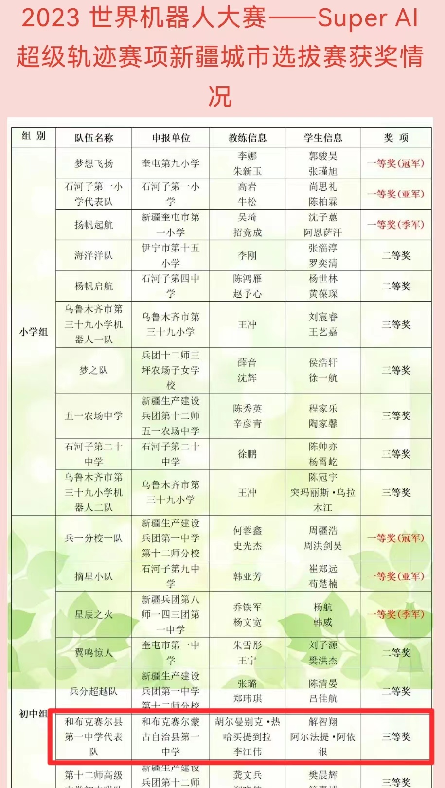 喜報:2023世界機器人大賽——Super AI超級軌跡賽項新疆城市選拔賽 塔城地區和布克賽爾縣第一中學獲優異成績