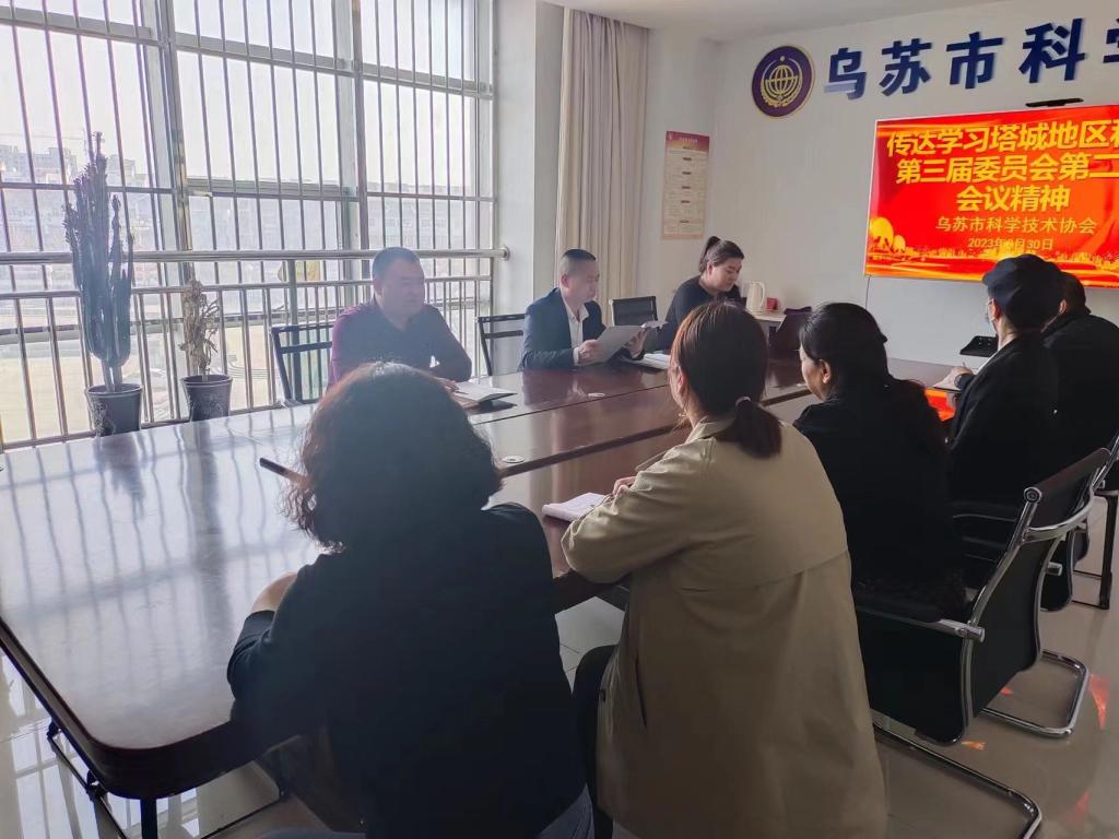 3月30日上午,烏蘇市科協組織全體干部學習塔城地區科協第三屆委員會第二次會議精神。