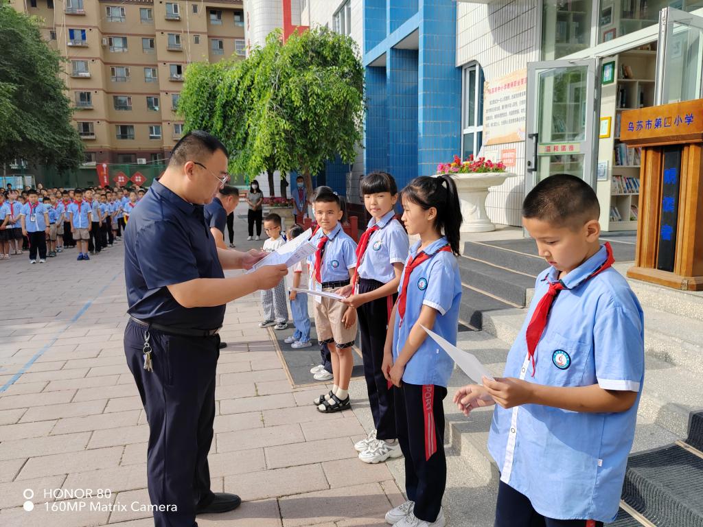 6月12日上午,烏蘇市科協(xié)聯(lián)合市第四小學(xué),組織全體師生在國(guó)旗下,為2022年青少年科幻畫比賽中獲得榮譽(yù)的同學(xué)及輔導(dǎo)員頒發(fā)榮譽(yù)證書。