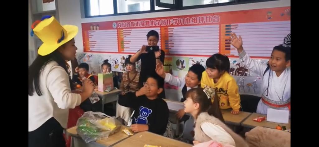 第二小學的陳沖老師和李璐璐老師給大家帶來了“火山爆發”和“空氣陀螺”兩個實驗秀。油和水密度不同,倒在一起產生了分層現象,再加入泡騰片,泡騰片溶于水后產生氣體,沖出油層宛若火山爆發一般。口吹空氣陀螺實驗利用一個一次性紙杯,杯壁剪成風輪葉片,杯底鏤空,中間插一根小棍做成轉軸,就做成了一個簡單的桌面小玩具——桌面口吹陀螺。