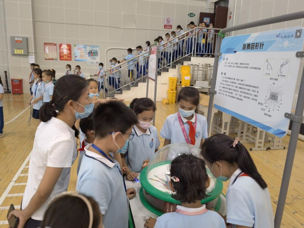 “老師,你看我一按動(dòng)這個(gè)按鈕,這個(gè)圓形就飛速轉(zhuǎn)起來了,好神奇啊!”“老師,這個(gè)怎么操作啊……”學(xué)生們樂在其中,認(rèn)真聆聽科技輔導(dǎo)員程勝華老師的講解,在享受現(xiàn)代先進(jìn)科技的同時(shí),拓展了科學(xué)知識(shí)。學(xué)生們時(shí)而蹲下瀏覽展品的介紹,時(shí)而向老師請(qǐng)教問題,探索科技的神奇。二年級(jí)一班程子軒同學(xué)正認(rèn)真地研究著“雅各布天梯”,他對(duì)電弧極其感興趣,堪稱“科學(xué)小專家”。他說:“這次科技展覽,我覺得非常有趣,以后我要做一位科學(xué)博士,研究更多的科學(xué)實(shí)驗(yàn)。”科學(xué)老師羅志宏說:“本次區(qū)科協(xié)舉辦的‘流動(dòng)科技館進(jìn)校園’活動(dòng)非常好,讓同學(xué)們零距離接受高科技知識(shí)、感受科學(xué)魅力。”