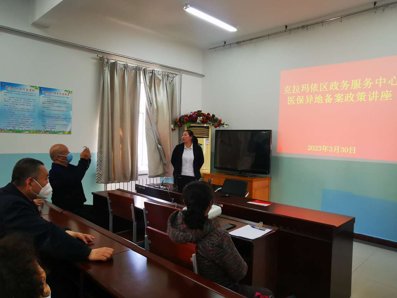 油南紅光社區(qū)科普志愿者服務(wù)隊,特邀克拉瑪依區(qū)政務(wù)服務(wù)中心老師孫澤雯為各位居民詳細講解了不同類型異地就醫(yī)備案的備案方式、所需資料等,針對廣大居民關(guān)心的異地備案登記、就醫(yī)、報銷等問題,宣講員熱情地為居民答疑解惑。科普隊員們現(xiàn)場指導(dǎo)大家如何在新疆醫(yī)保APP上備案,同時講解了異地就醫(yī)的新政策、新變化。