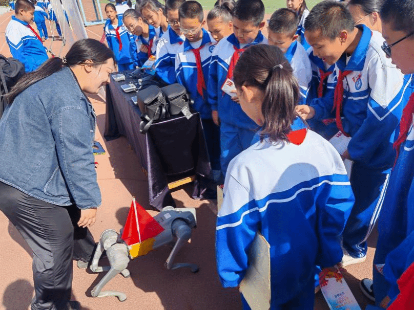 隨后,青少年校外活動中心水磨少年行研學團隊聯合天山航空,為同學們帶來了民用無人機、搜救無人機、巡航無人機及機器狗等前沿科技展品,設置“國防科技互動體驗區”。在老師的講解下,同學們通過“沉浸式操作+互動問答”的方式,直觀了解科技在現代國防中的應用。