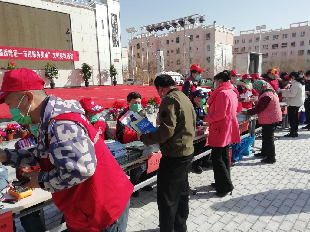 活動現場,人頭攢動,熙熙攘攘。哈密市科協志愿者通過發放疫情防控、安全生產、種植養殖、健康保健等內容的科普資料,向村民講解文明行為的目的、意義、基本內容等;市場監督管理局志愿者向村民普及食品安全、藥品安全等知識;市中級人民法院志愿者向村民普及法律知識并提供免費法律咨詢服務;市婦聯志愿者向村民普及婦女兒童保護權益內容;市殘聯志愿者向村民宣講維護殘疾人合法權益等知識。志愿者熱情的服務讓群眾“零距離”感受到了志愿者的溫暖,受到了群眾的贊譽。