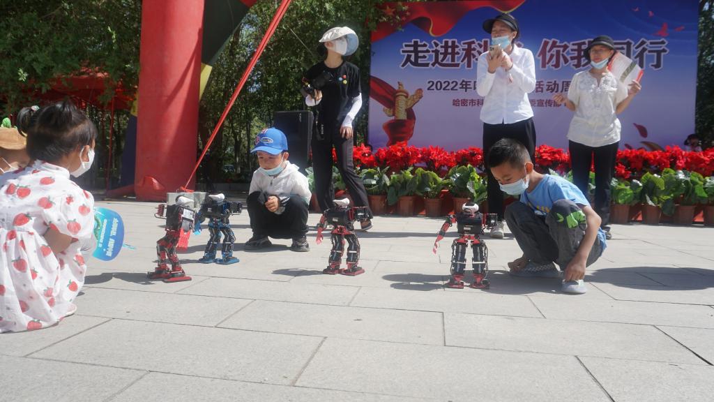活動現(xiàn)場,哈密市科協(xié)工作人員通過發(fā)放宣傳資料、懸掛橫幅、科技展品展示、現(xiàn)場答疑等形式,向群眾普及健康保健、疫情防控、食品安全、安全生產等知識,科技工作者還向群眾展示了機器人舞蹈表演,隨著音樂的節(jié)拍,機器人做出不同的動作,將科技與舞蹈藝術相結合,使現(xiàn)場群眾感受了科技的力量,贏得現(xiàn)場觀眾陣陣喝彩。