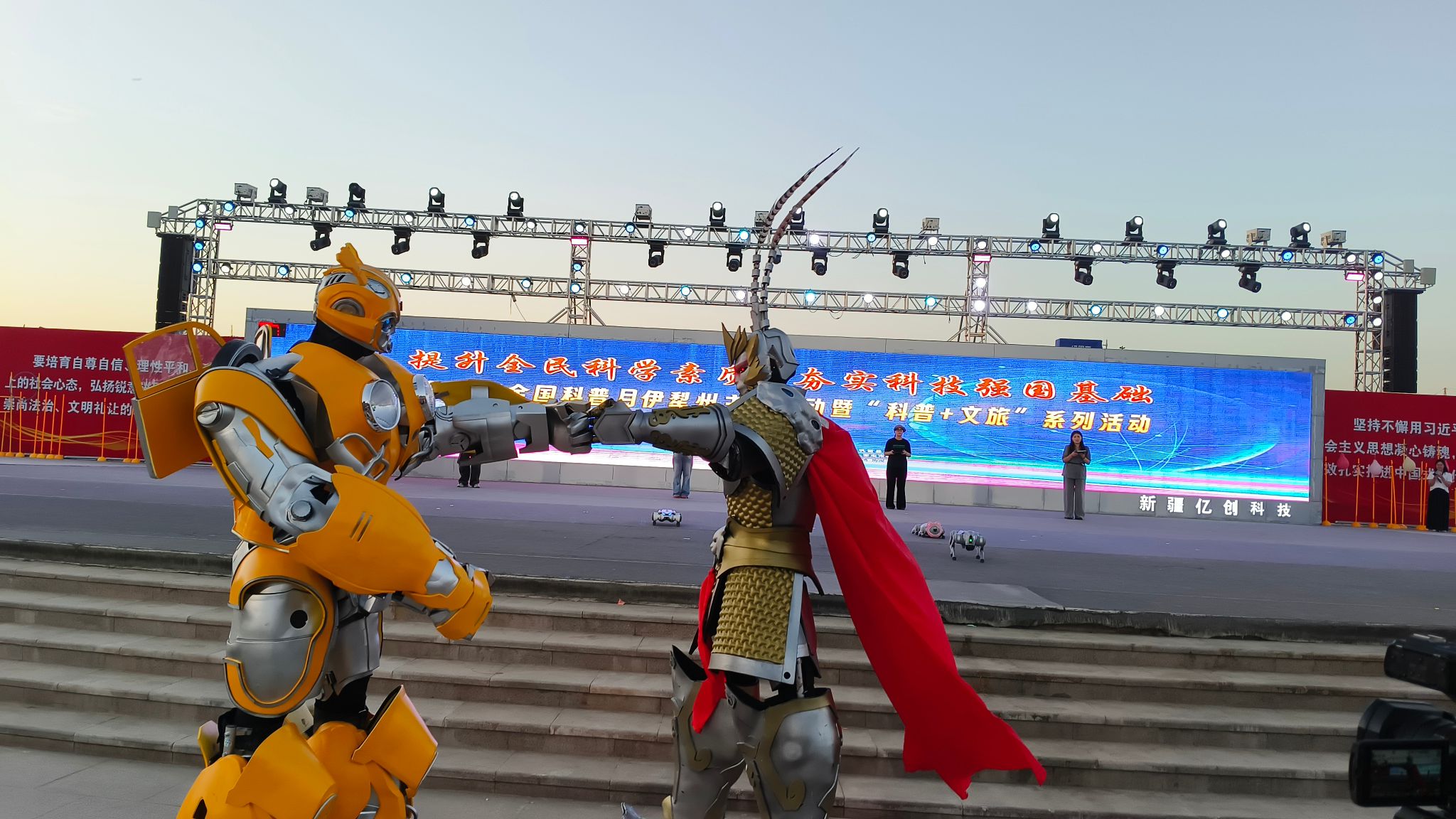 26日晚,嘉賓們按下燈柱啟動鍵,活動在充滿科技感氛圍中拉開帷幕,伊犁州全國科普月活動正式啟動,州科協主席艾尼瓦爾·艾依達爾出席活動并致辭,充分肯定了“文旅與科普融合”的發展理念。啟動儀式后,舉行了科技舞蹈表演、航模飛行表演、無人機模擬比賽、機器狗+機甲大師表演、科普魔法秀表演、詩歌朗誦和弘揚科學家精神故事等豐富多彩的科普文藝晚會。