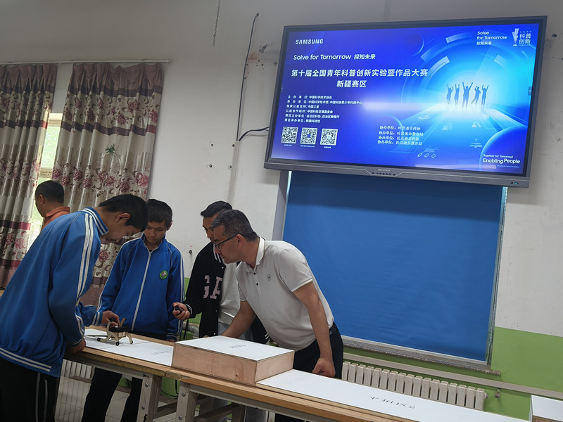 每場比賽結束后,賽事組成員們為孩子們答疑解惑、指出具體問題,指導他們在后續比賽中再創佳績。初賽結束后,由新疆科技館組織專家組對各地州市提交的作品進行評審,評比出進入復賽隊伍參加新疆賽區復賽。