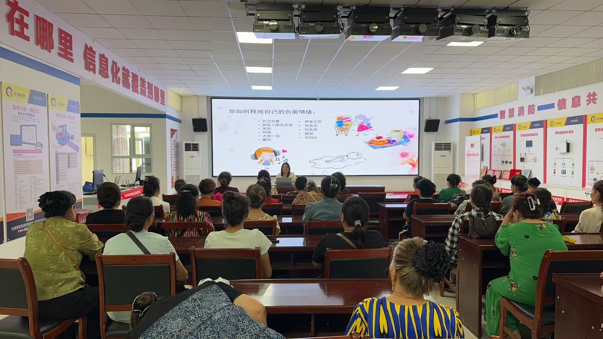 參觀結(jié)束后,由媄樂心理咨詢的美熱木老師為大家?guī)砹艘粓鲋黝}為“如何緩解心理壓力”的專題課程。美熱木老師結(jié)合婦女在家庭和社會中的多重角色,通過案例分析、互動問答等方式,生動講解了心理壓力的成因、表現(xiàn)及緩解方法,引導(dǎo)大家學(xué)會情緒管理,提升心理調(diào)適能力。現(xiàn)場氣氛熱烈,婦女們積極參與互動,紛紛表示受益匪淺。