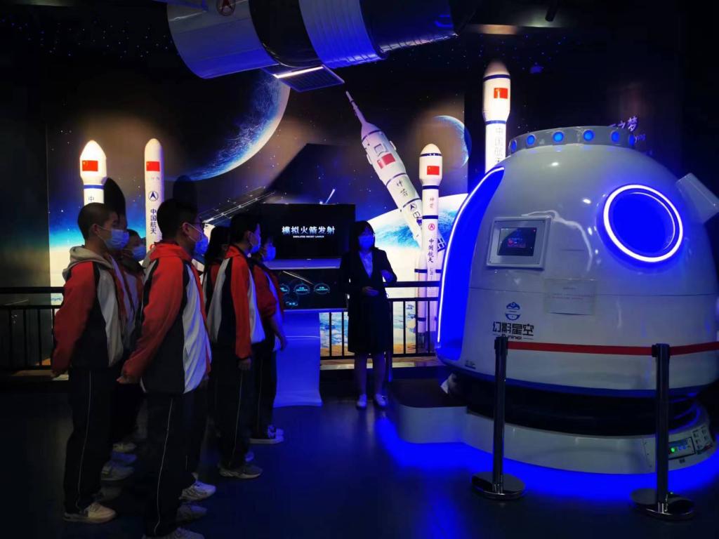 活動現場,學生們共同觀看了神舟十三號返回地球影像影片,聆聽了一場航空航天知識專題講座,并參觀體驗了科技館內模擬火箭發射等虛擬現實展品展具,一起感受中國航天技術的發展,了解了中國航天人的辛苦付出,加深了青少年的愛國熱情,小小的航天夢已在廣大青少年的心中點燃。