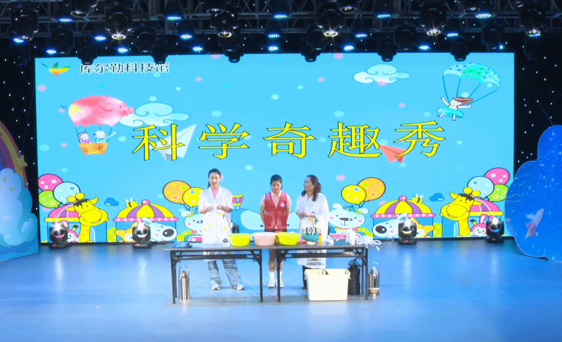 除了精彩的文藝節(jié)目,科技元素成為本次活動(dòng)的一大亮點(diǎn)。庫(kù)爾勒市科協(xié)帶來(lái)的阿爾法機(jī)器人舞蹈秀以精準(zhǔn)靈動(dòng)的動(dòng)作驚艷全場(chǎng),贏得陣陣掌聲;巴州科協(xié)帶來(lái)的機(jī)器狗表演同樣“吸睛”,讓孩子們近距離感受到了人工智能的魅力。庫(kù)爾勒市科技館的老師走上舞臺(tái),與孩子們親密互動(dòng),通過(guò)“消失的水”“馬德堡半球?qū)嶒?yàn)”等科學(xué)奇趣秀,為孩子們打開(kāi)了一扇探索科技奧秘的大門(mén),孩子們?cè)谟螒蚧?dòng)中深切感受科技的神奇,現(xiàn)場(chǎng)贊嘆聲此起彼伏。