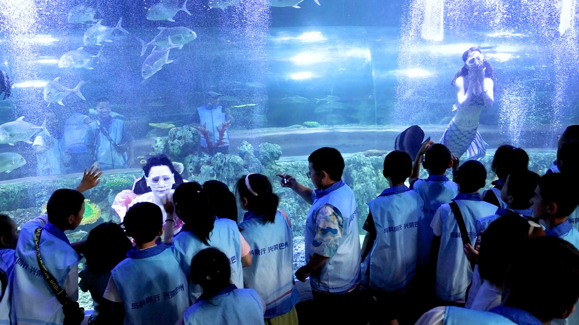 海洋探秘,邂逅“藍色星球”的生態奇跡。巴州西部海洋館里,熱帶魚群、夢幻水母和機靈海狗的趣味表演,讓營員們近距離感知海洋生物多樣性。美人魚表演與科普講解結合,這場寓教于樂的海洋科普研學,為遠離海洋的孩子們傳遞了“守護蔚藍”的生態理念。