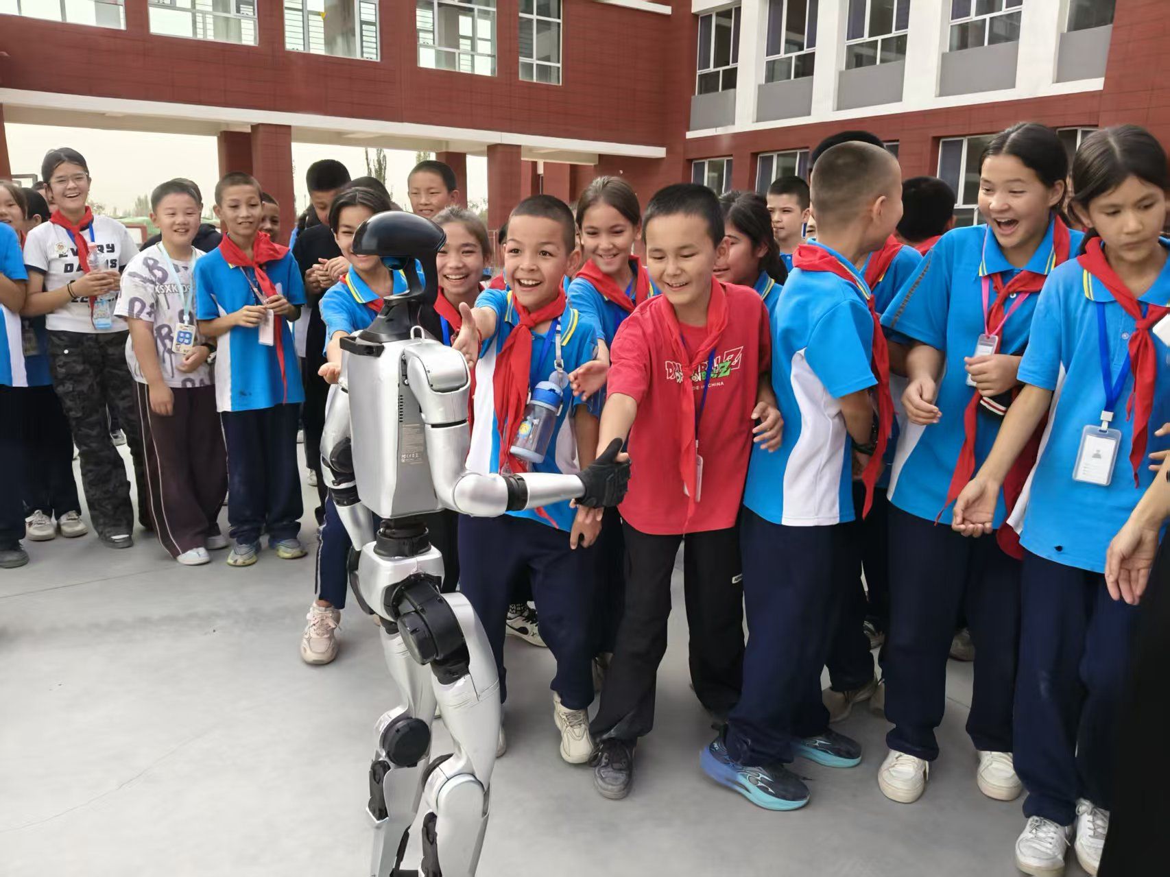 本次采取“三級聯動”機制,四輛科普大篷車攜多種車載展品亮相校園,為600余名師生帶來一場沉浸式的科學體驗。師生們近距離接觸了宇樹機器人、四足機器人、模擬作戰坦克、VR眼控設備等人工智能技術展項,并觀看了科普電影。