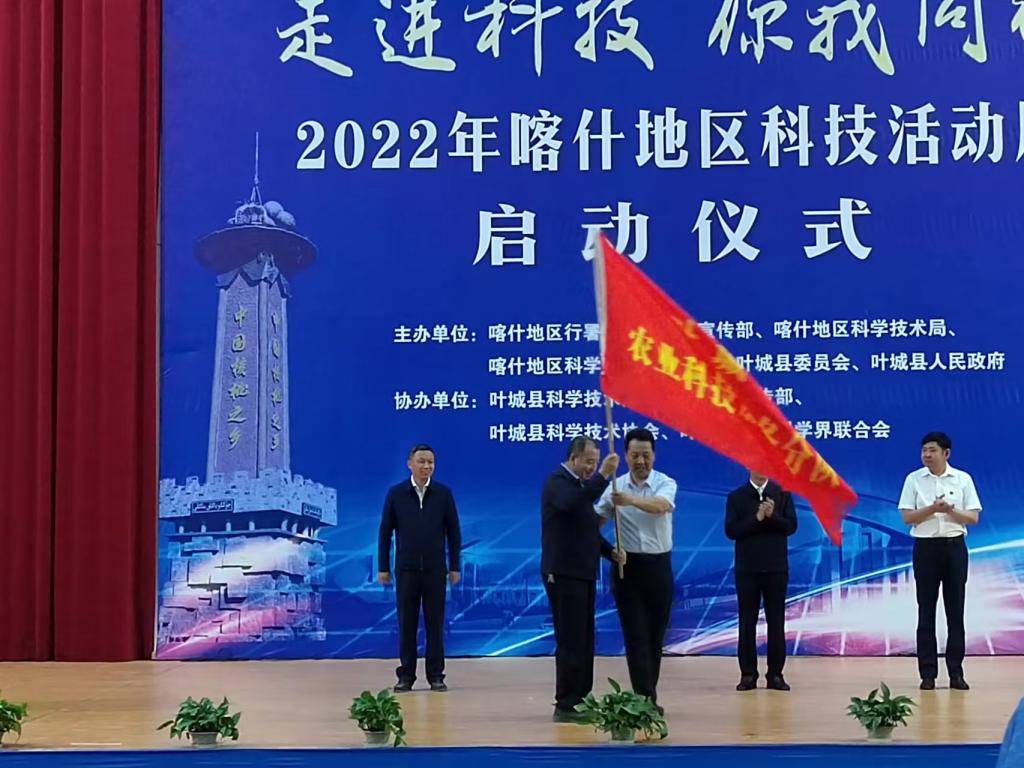 啟動儀式上,對葉城縣青少年科普教育分隊、葉城縣醫(yī)療衛(wèi)生科普服務(wù)分隊、葉城縣消防科普服務(wù)分隊、葉城縣農(nóng)業(yè)科技服務(wù)分隊授旗。