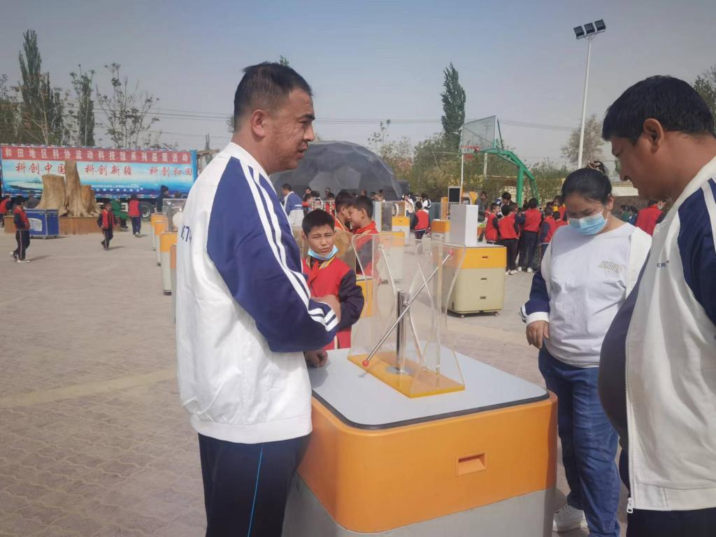 為了全面推進全民科學素質(zhì)提升行動“十四五”中期評估工作,全面提升我市“五大人群”全民科學素質(zhì)提升,將科學知識送到最偏遠的鄉(xiāng)村,4月11日-4月13日,和田地區(qū)科協(xié)、和田市科協(xié)聯(lián)合,將“流動科技館”大車,駛?cè)刖嚯x和田市最遠的鄉(xiāng),擁有魅力絲綢之鄉(xiāng)的吉亞,開展“流動科技館巡展”活動。生動的3D恐龍、神秘的球幕影院、聲光電學的科普教具、可愛的機器人表演、驚心動魄的無人機表演。成為了本次巡展的最熱門,吸引了無數(shù)參加巡展的農(nóng)牧民、鄉(xiāng)村青少年、機關(guān)干部的眼球,巡展期間隨處都會響起陣陣掌聲和尖叫聲,讓大家近距離的感受科技的神奇奧秘和科學的魅力。極大地鼓舞參觀者崇尚科學、熱愛科學、學習科學、使用科學來創(chuàng)造我們的美好生活的信心和決心。