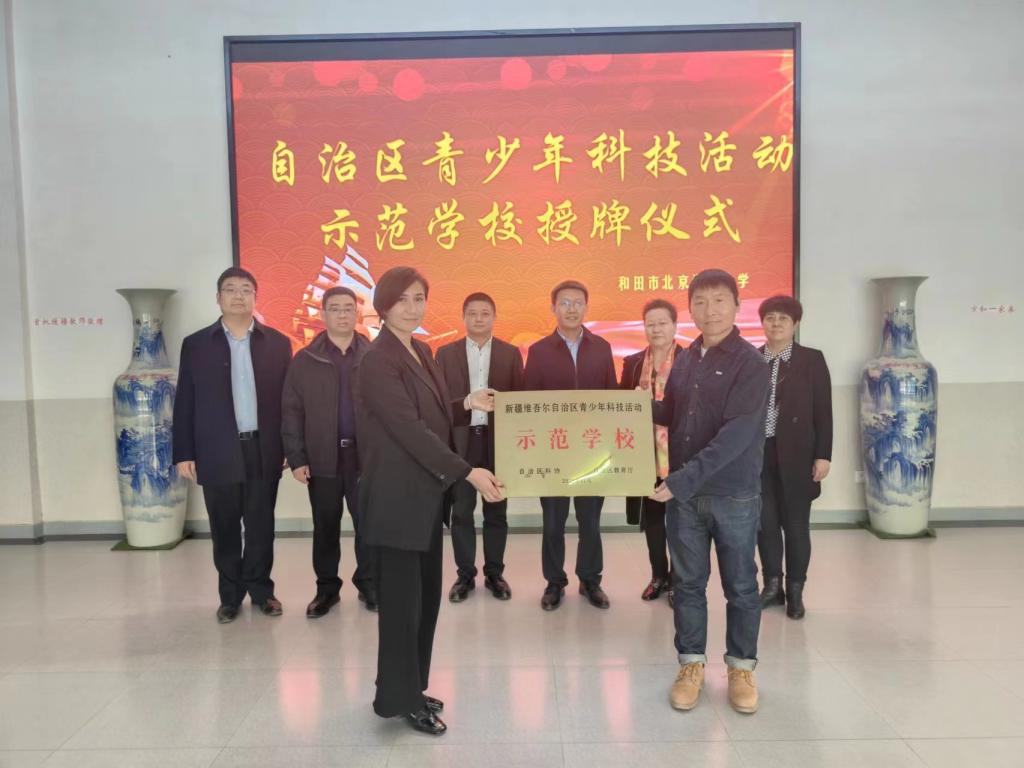 2023年3月9日,和田地區科協、和田地區教育局、和田科技館相關領導為和田市海淀小學進行自治區青少年科技活動示范學校授牌,和田市委副書記趙振宇同志,和田市教育局、和田市科協相關領導參加了授牌儀式。